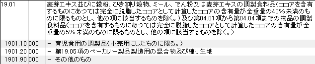 HSコードの1901の検索と該当例
